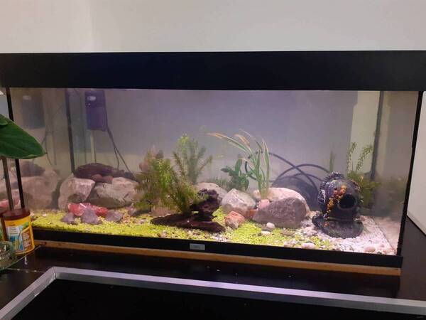 Omdat we nu een groot huis hebben gekocht, vonden we dat vanwege de pangasius sutchi, een groot aquarium nodig was, en dus is er een 260 x 60 x 60 aquarium in de maak, met bio filters en all. Probleem is, omdat we verhuizen zijn de pangasius in bad van mn schoonmoeder gegaan. Omdat dit bad wel als bad gebruikt is, lijkt het erop dat zeep residu het water heeft vervuild en helaas zijn de pangasius overleden.