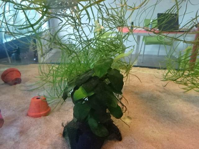 Eigenlijk gaat het super met de visjes, enkel de Menkaburi en de Calico worden nog steeds om eitjes verzocht om te snacken en zie dit soms nog op enkele blaadjes zitten. Daarom denk ik dat de Calico wat afgeremd wordt in de groei...