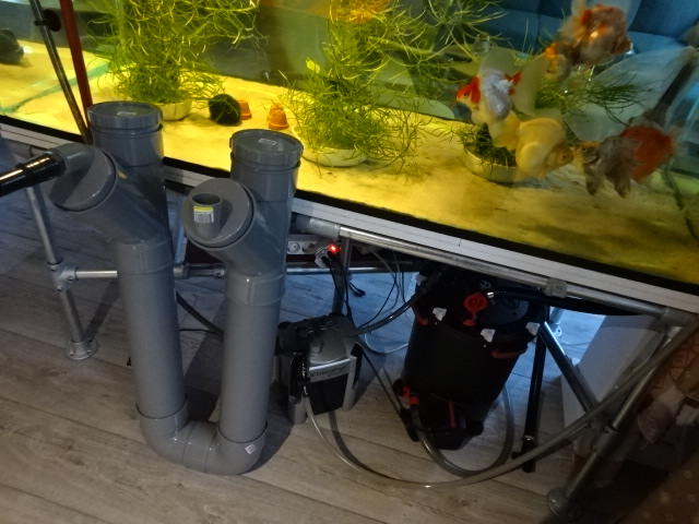 En een mooie " potfilter-extensie" zo te zien. Hoe groot zijn jouw Ryukins inmiddels? Ze zeggen dat Ryukins en Oranda's het grootste kunnen worden, dus ik ben wel benieuwd naar de groeicurve van jouw team Ryukin!😀