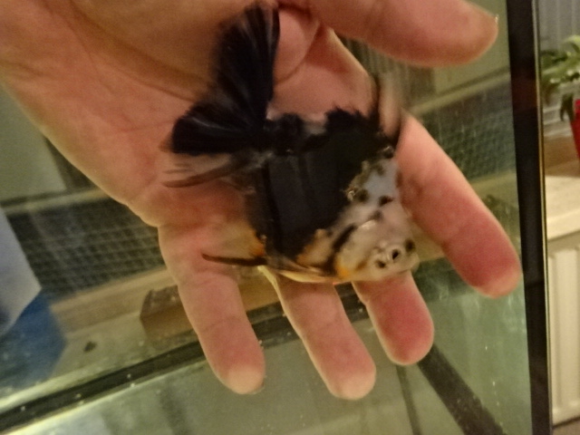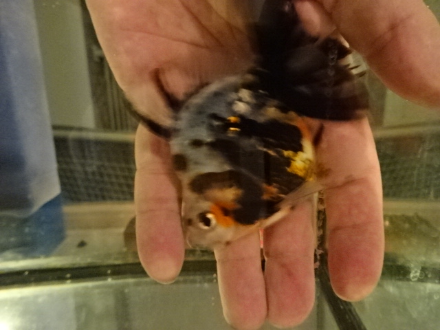 Tijdens de selectie uit ca 50 broertjes en zusjes was ze best gestrest en bevroor ze enkele keren met het neusje tegen het oppervlak, mondje en kieuwen stil maar oogjes keken goed rond. Ze werdt ook flink nagezeten door een broertje wat voor mij de selectie wat duidelijker maakte.