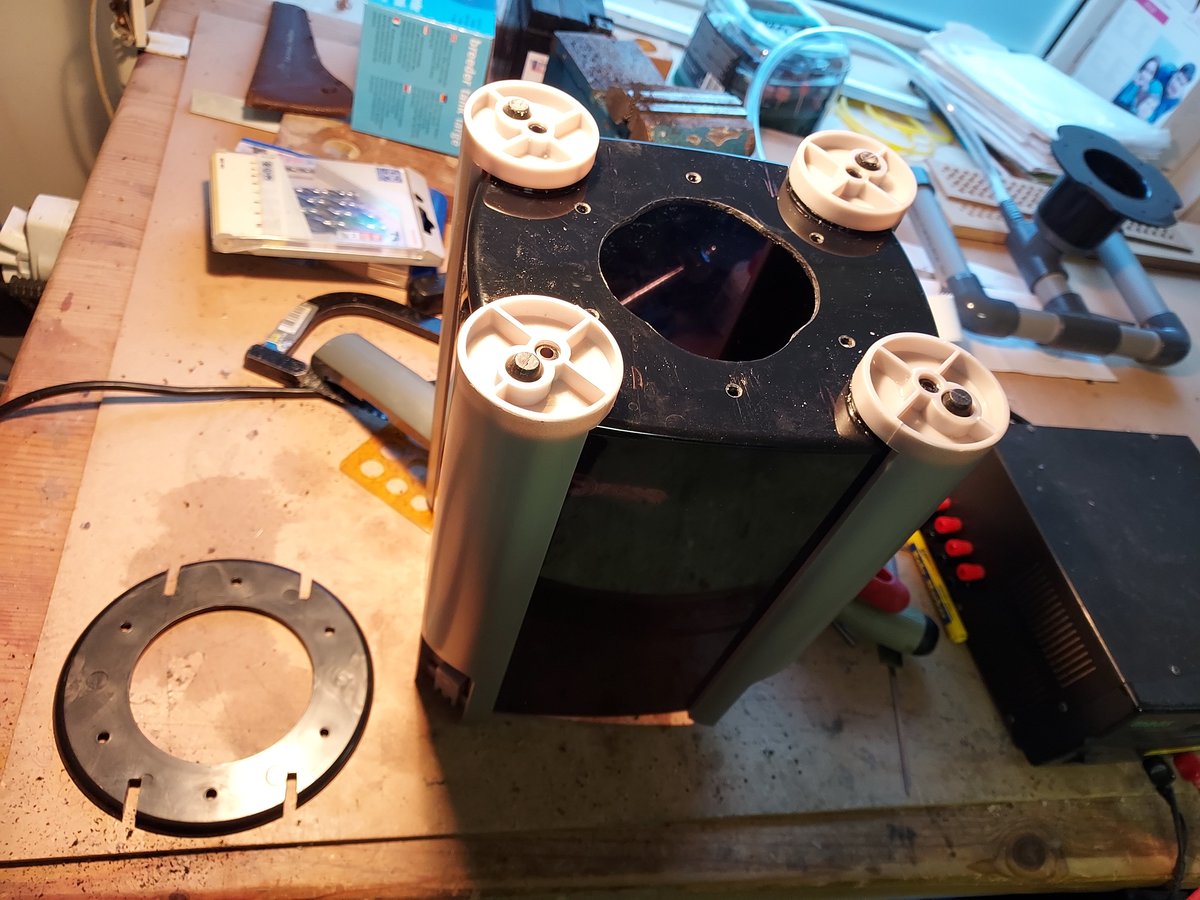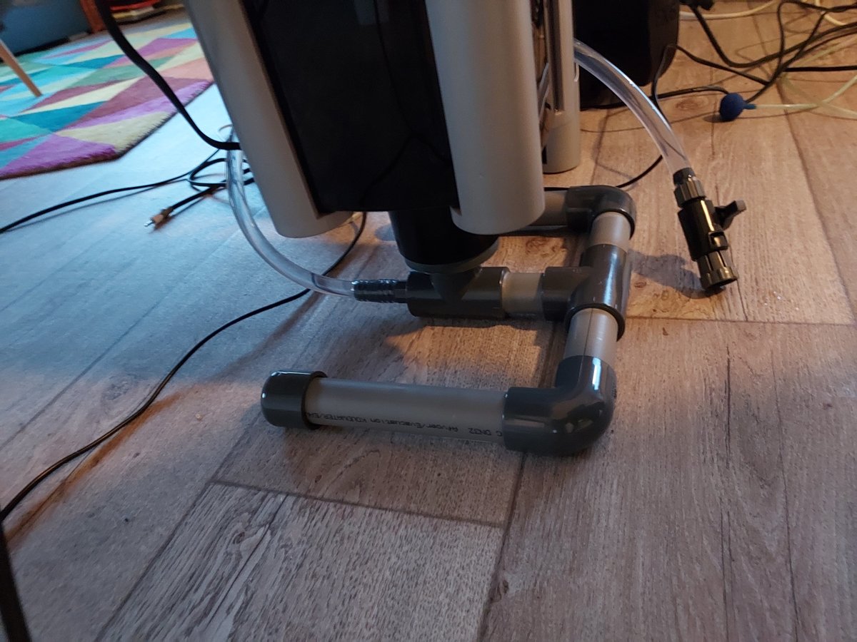 Vandaag even een afvoer voor mijn jbl gravelvac in elkaar gelijmd. Moet nog even drogen en binnenkort de gatenzaag in de jbl zetten.
