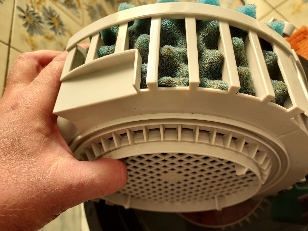 Fotos van voor en na de test en moet zeggen dat er nu meteen veel meer zand afgetapt kan worden en restvuil ook zonder te veel schudden/draaien aan de handvatten.Is nu wel duidelijk dat het bovenste mandje niet aansluit op de afdekplaat van de pompkop. Op zich niet zo heel erg omdat anders de kop zou kunnen oververhitten als de filters verstopt zijn en nu blijft hij altijd wel iets lekstroming geven. Weet niet of andere merken dit ook doen?