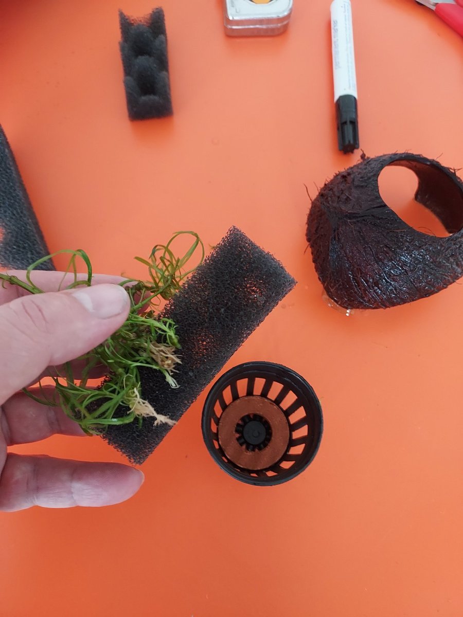 Nou vraag ik me af of ik de glasvezel in dit bakje ook kan vervangen voor blauw schuim. Ik verwacht dat hier ook een beter oppervlak is om vuil op te hechten wat voeding is voor de wortels. Of klei stickjes erbij doen.