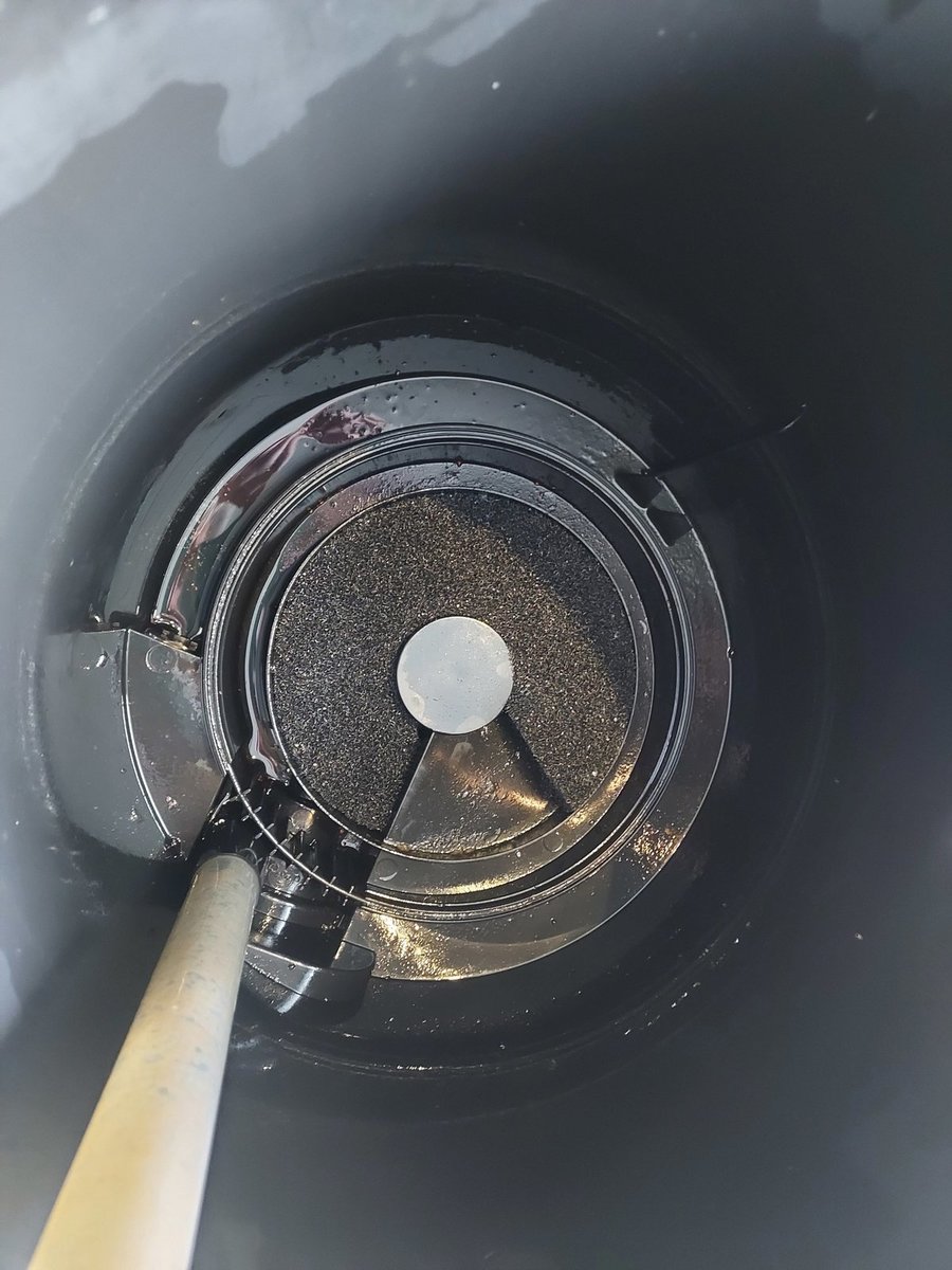 Alleen even in de gaten houden dat de uitlaat in de bak onder water staat anders zuigt hij veel lucht aan door het aftappen zoals je ziet. verder nog een keer een echtra schot in zetten om de draaikolk stil te leggen dan bezinkt meer vuil denk ik.