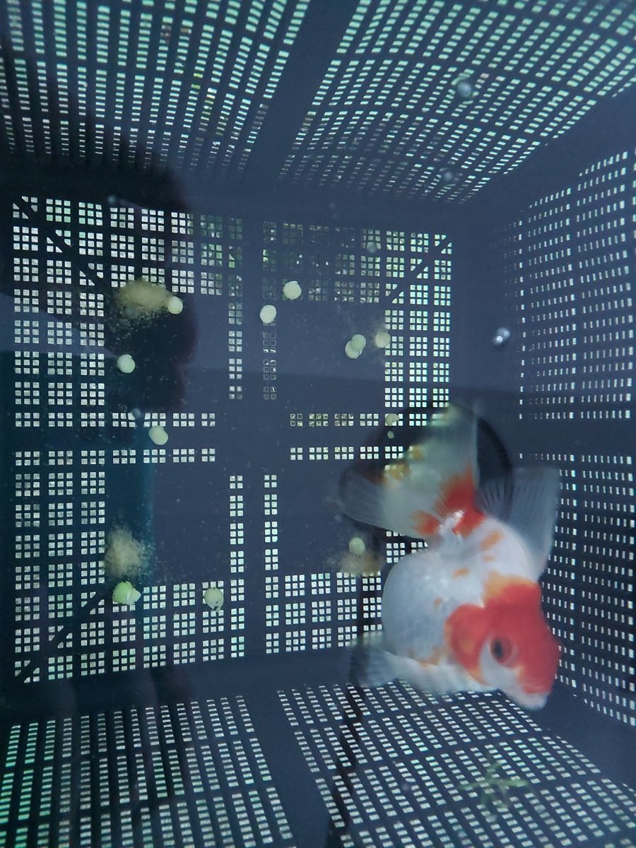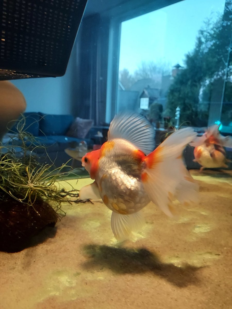Ik vind die kleine calico er persoonlijk ongezond dik uit zien, zeker omdat ie zo scheef zwemt, is dat een vrouwtje? Valt me ook op dat de ogen uitpuilen
