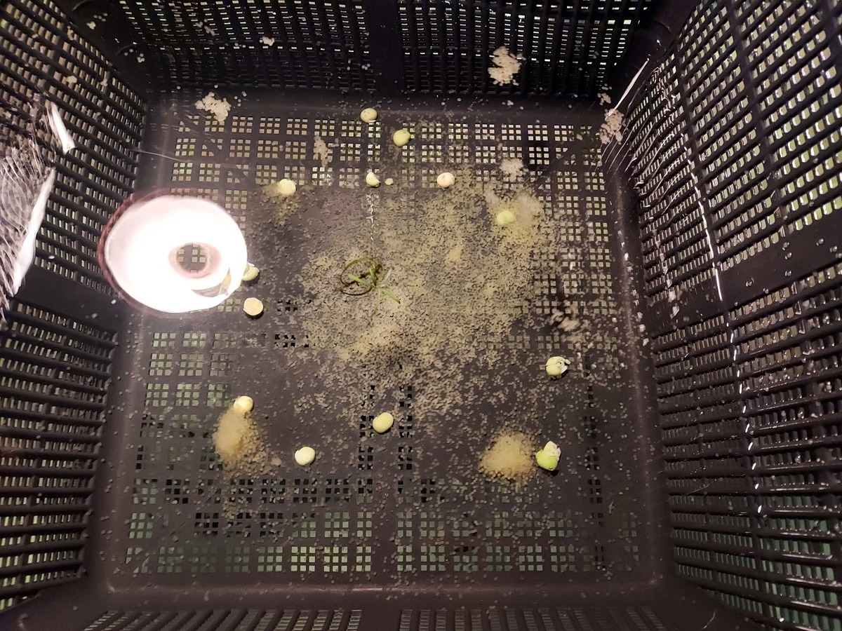 FF met een waterwissel het plantje uit de glaswol getrokken. (heb niet altijd zin om tot mijn oksel mijn arm in die bak te steken om wat te pakken 😉 )