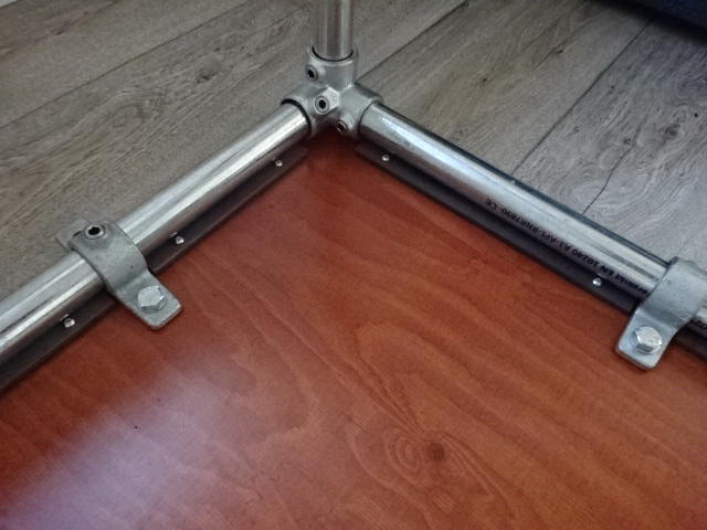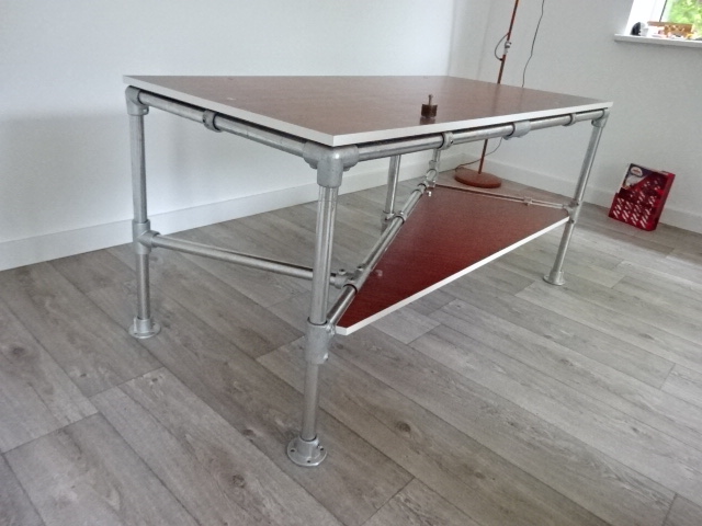 NU wachten op 1 steigerbuis die ik was vergeten en wat flenzen om een "boekenplank" te kunnen maken. Morgen eerst een 6mm strip halen en in stukken slijpen, boren en monteren. Daarna enkele koppelstukken vrij van het blad dunner slijpen.
