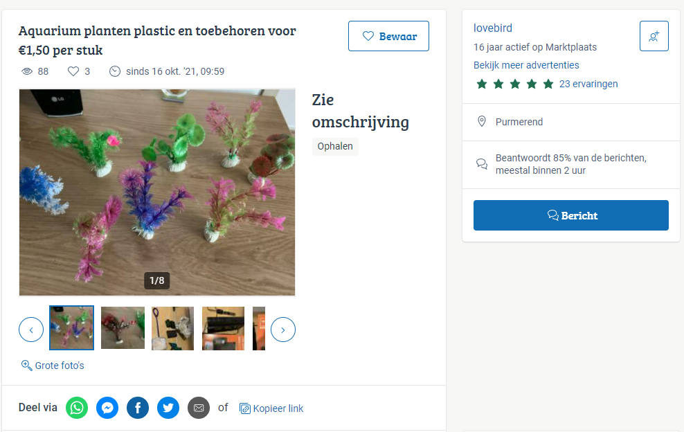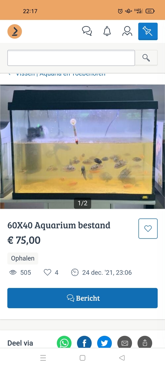 Dan ben je nog wel even bezig. De zelfde verkoper heeft nog 2 aquaria in de verkoop staan, een 120 en een 150 lang. Ook bomvol vissenBekijk bijlage 339983