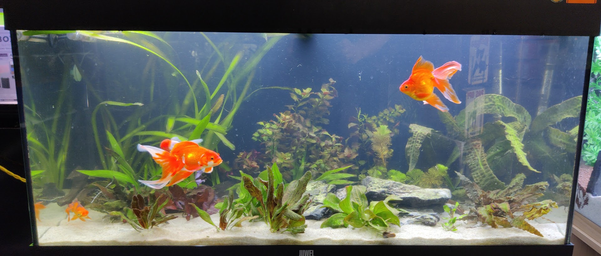Ik ga mijn eigen mening even ventileren, wat ik in mijn ervaring heb opgedaan. De 50liter per vis regel vind ikzelf een vuistregel die je met een korrel zout kan nemen. Onderstaande bak staat onder mijn hoede; een Rio 180 (100x40*50cm, 180L) met een extern filter van Tetratec 1200. Er zitten 4 sluiers(2 van 2 jaar oud, 2 van 3/4 jaar oud), 2 volwassen ancistrussen, 20-30 jonge ancistrussen en 100dern garnalen. De goudvissen zijn de meest goudkope vuilnisbak visjes die je kan verzinnen en de 2 oudsten zijn in hun eerste levensjaren gehouden in een 50liter bak met te weinig onderhoud. Echter heb ik ze overgenomen omdat ze letterlijk de bak uit groeiden. Nu zijn ze bij ons ook nog weer flink gegroeid. Om de bak netjes te houden ververs ik minimaal 1x per week 80% water(via een 32mm spiraalslang die rechtstreeks op de riolering kan, tuinslang daarna weer erin om te vullen).