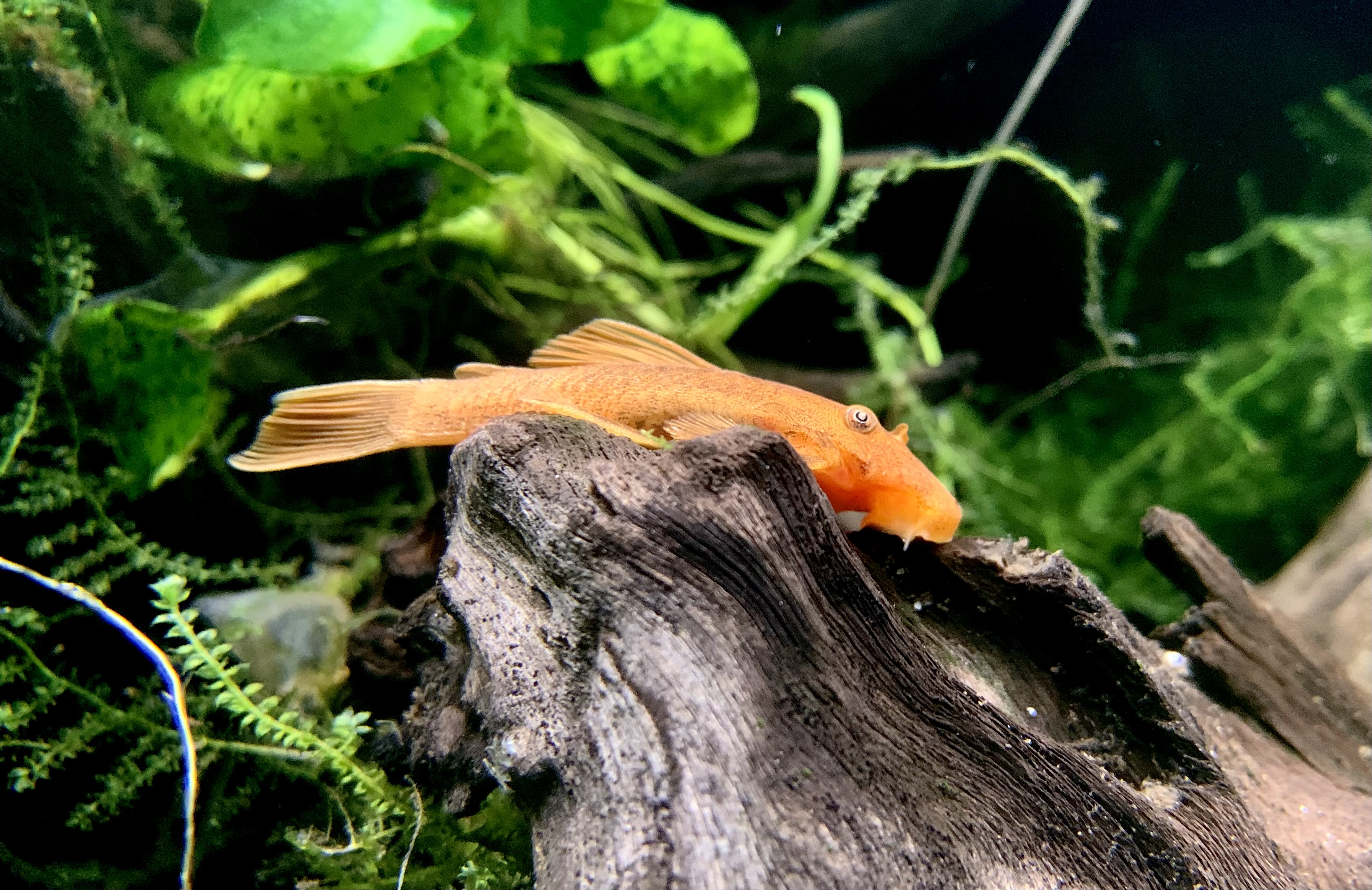 Omdat ik het allemaal snel wilde overzetten na het overlijden van de kogelvis heb ik niet heel veel tijd aan het inrichten besteed. Eerst wilde ik links hout en rechts een vrije open zwemruimte, maar nu alles er zo in ligt ben ik best tevreden. Ik twijfel erover om nog wat bladeren enzo toe te voegen om het water wat te kleuren. Ook wil ik nog wat meer waterplanten in de achtergrond, maar wat weet ik nog niet helemaal… En wat meer drijvers en stenen