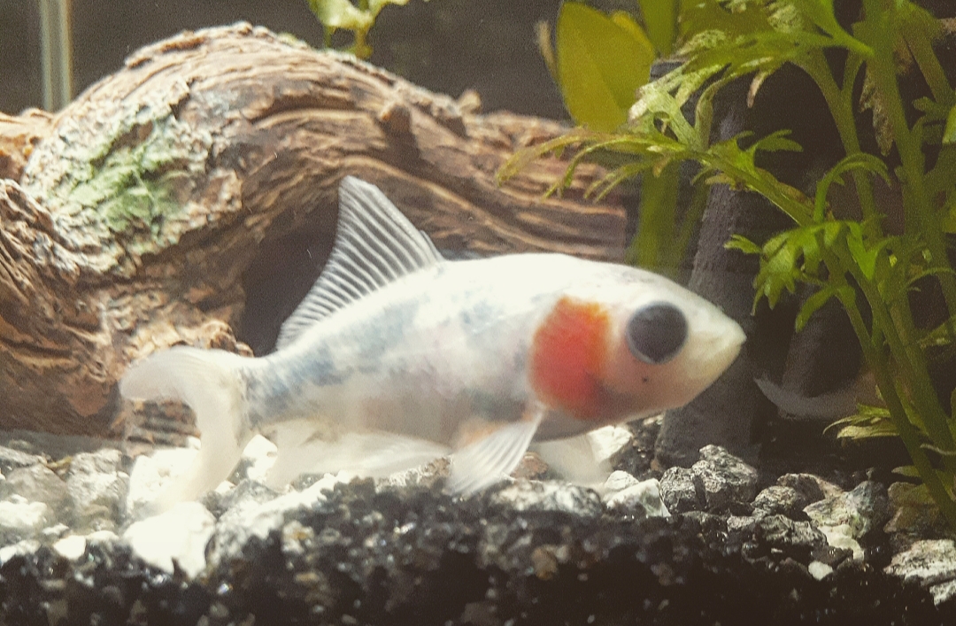 Mijn shubunkin is niet ongelukkig geworden (heeft ook niks) en heeft sinds Februarie een jong ( shubunkin ) vriend gekregen. En met hem is dus iets mis.