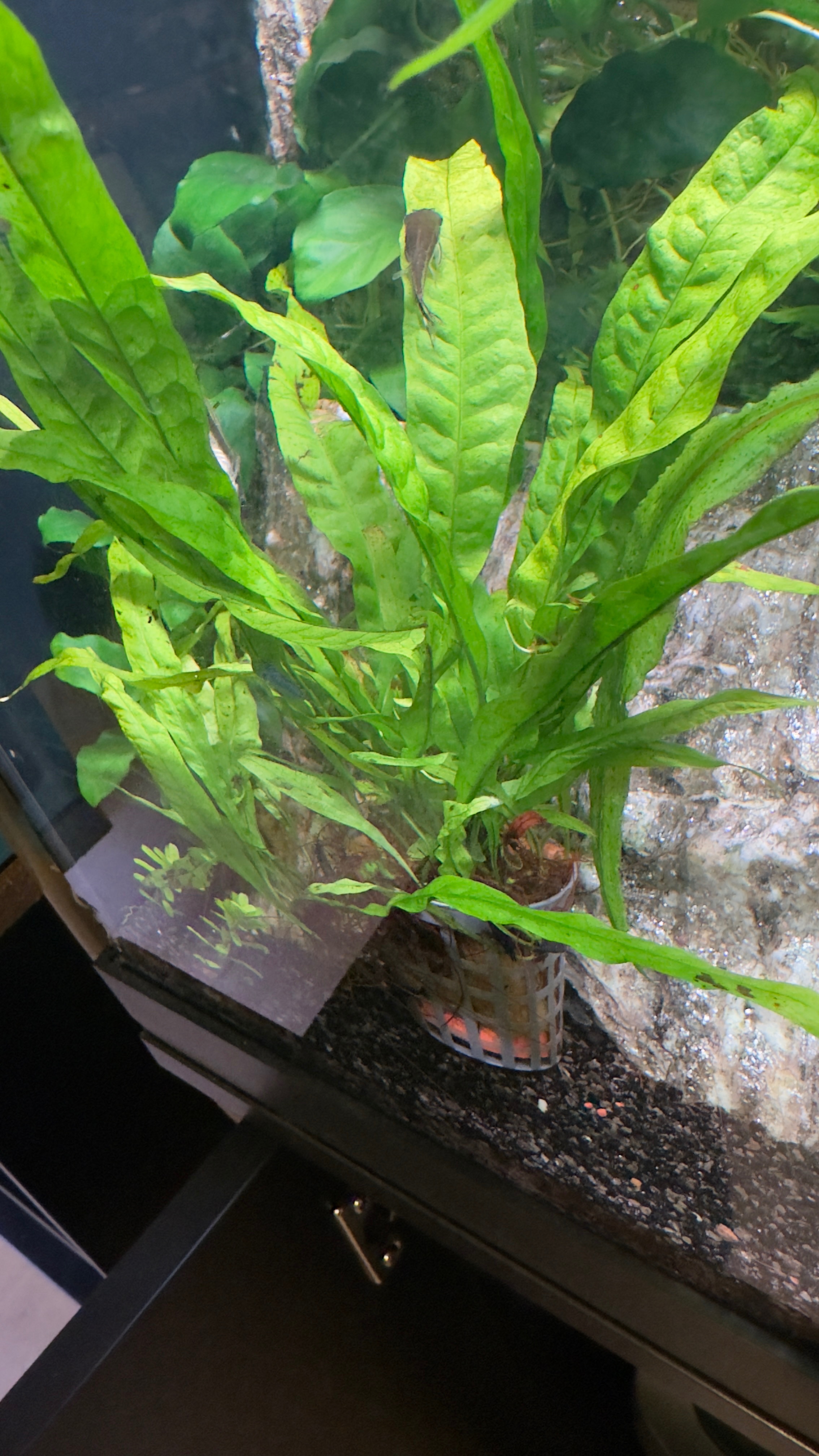 Qua planten heb ik vanalles en nog wat met o.a. Valesneria, Crypts, Echinodorus en veel mos.