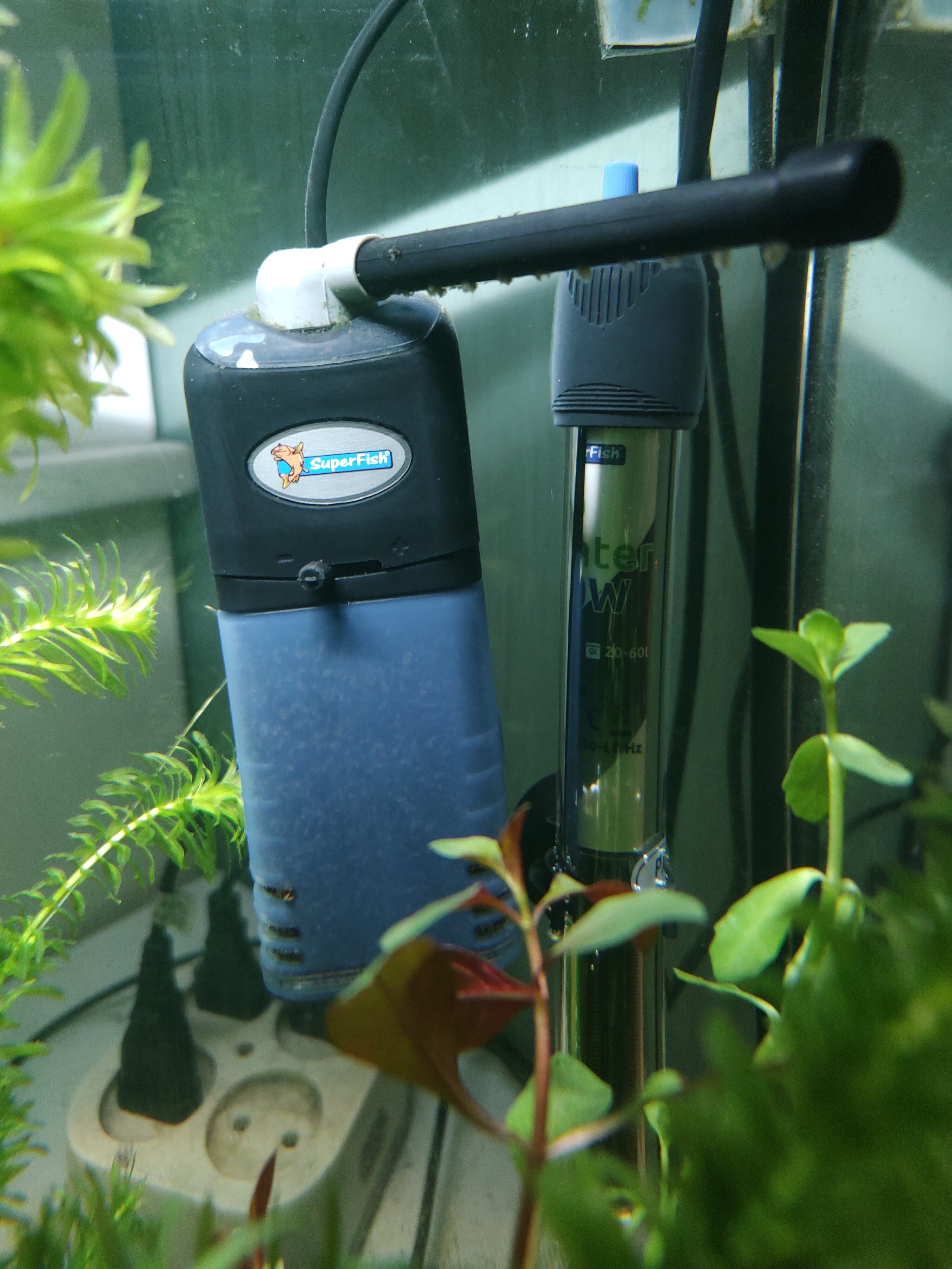 Drie dagen geleden is de thermoregulator van het neon tetra aquarium kapot gegaan. Meteen een nieuwe gehaald en aangezien de planten aan vervanging toe waren, deze ook deels vervangen.