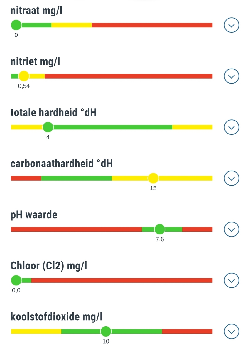 -waarden zie foto(carbonaat hardheid is altijd al hoog geweest. De aquaria zaak zei dat als dat het enige was ik er niet heel veel aandacht aan moest besteden als beginner)