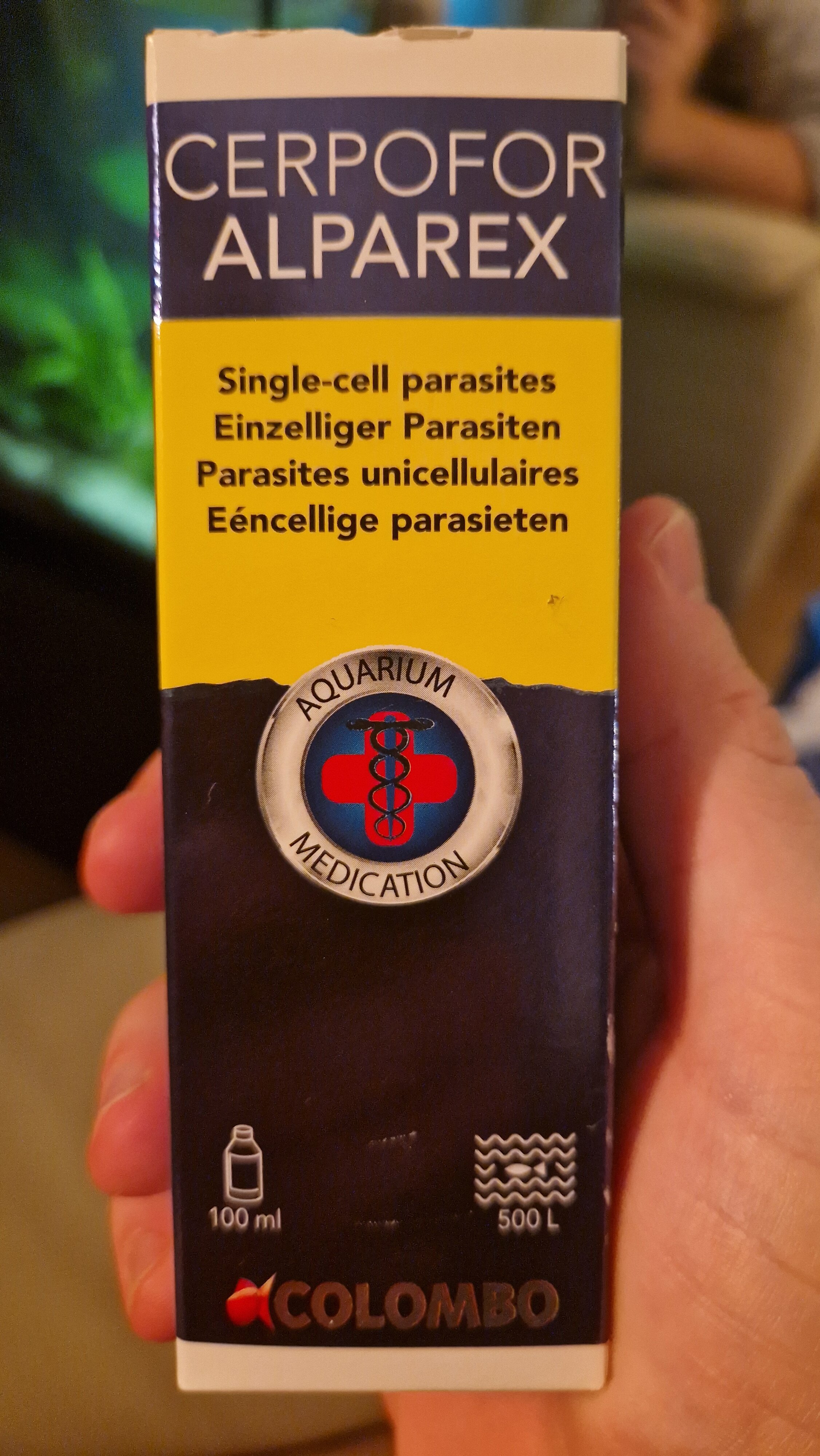 We zijn vrij snel begonnen met een kuur Alparex van Colombo toen onze vissen nog maar een paar stipjes hadden. Inmiddels zitten we op dag 4 én zien we na de eerste her dosering eigenlijk meer stippen t.o.v. dat we begonnen.