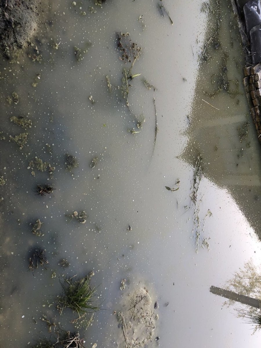 sinds vorig jaar oktober een leemvijver aangelegd in een druppelvorm, zal ong 8 bij 4 zijn. Veel ondiepe stukken voor moeras en in het midden het diepste punt van +- 1.50 m.