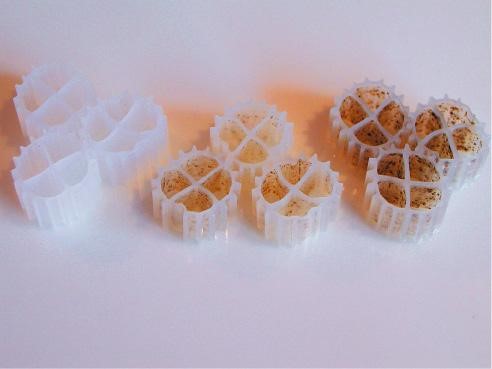 Om een ideale matrix te vinden waarin de biofilm zich optimaal kon ontplooien ook met het oog op Denitrificatie in een biofilm kwam men uit op een rond kunstofmedium aan de buitenkant voorzien van een vertanding die het zweefeffect in het water verhoogd en tevens zorgt dat organisch vuil zich niet kan vasthechten met aan de binnenkant een kruisje !