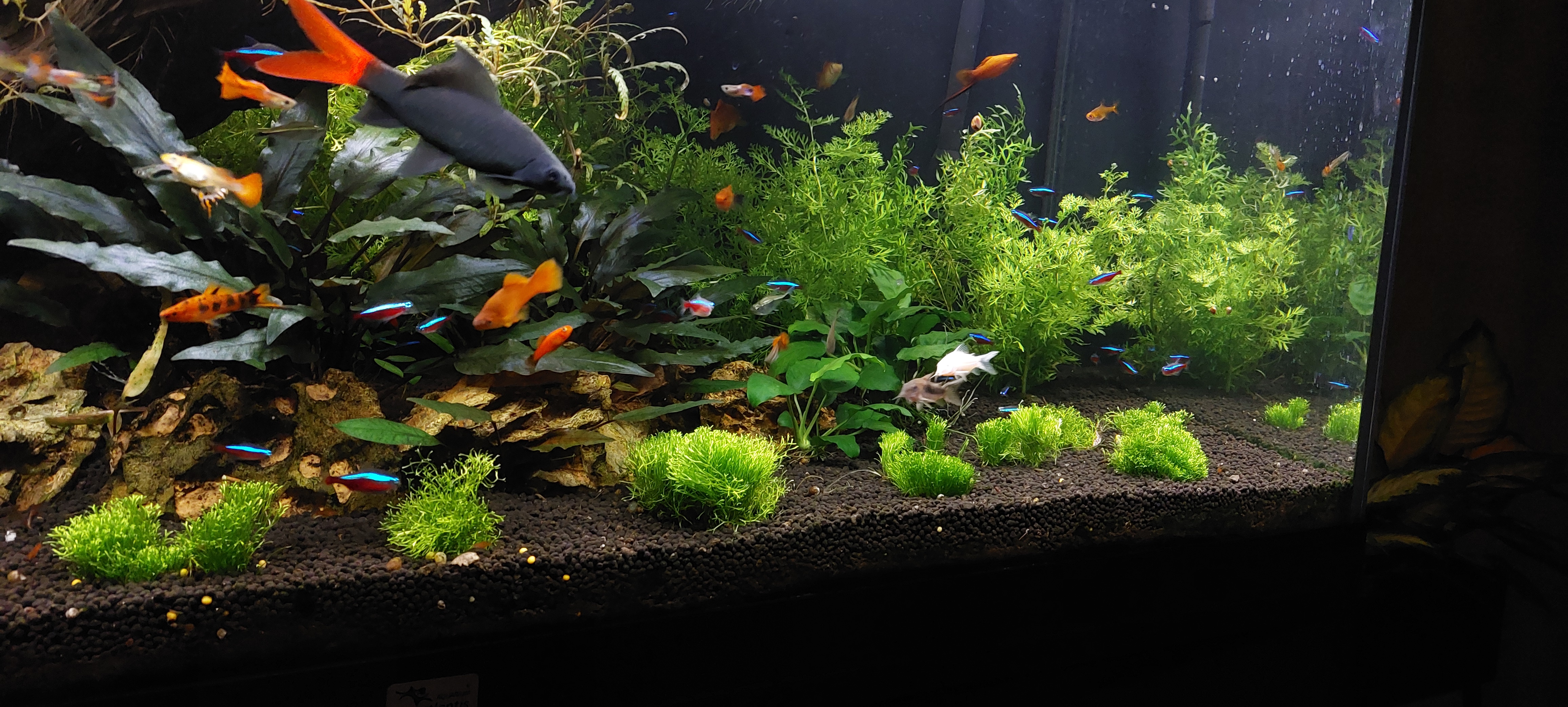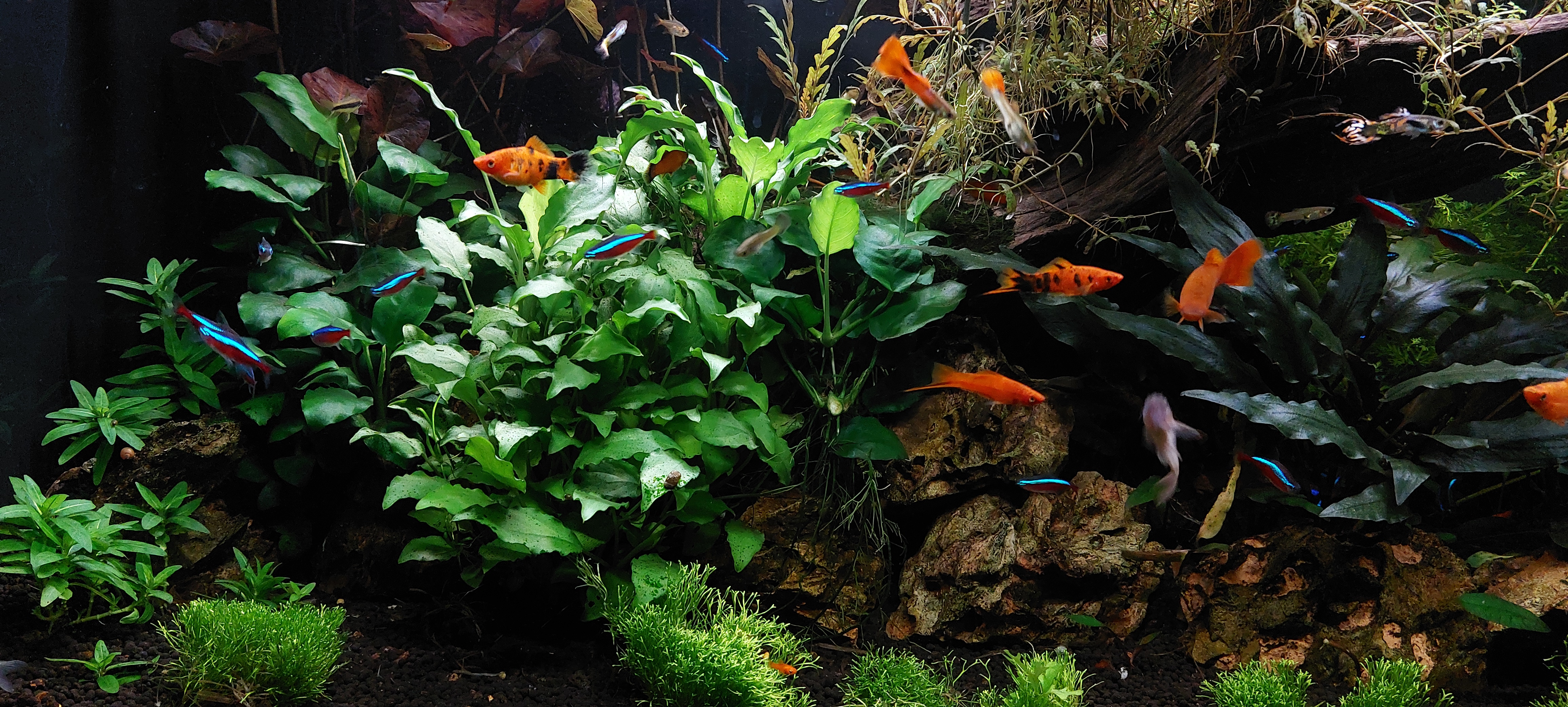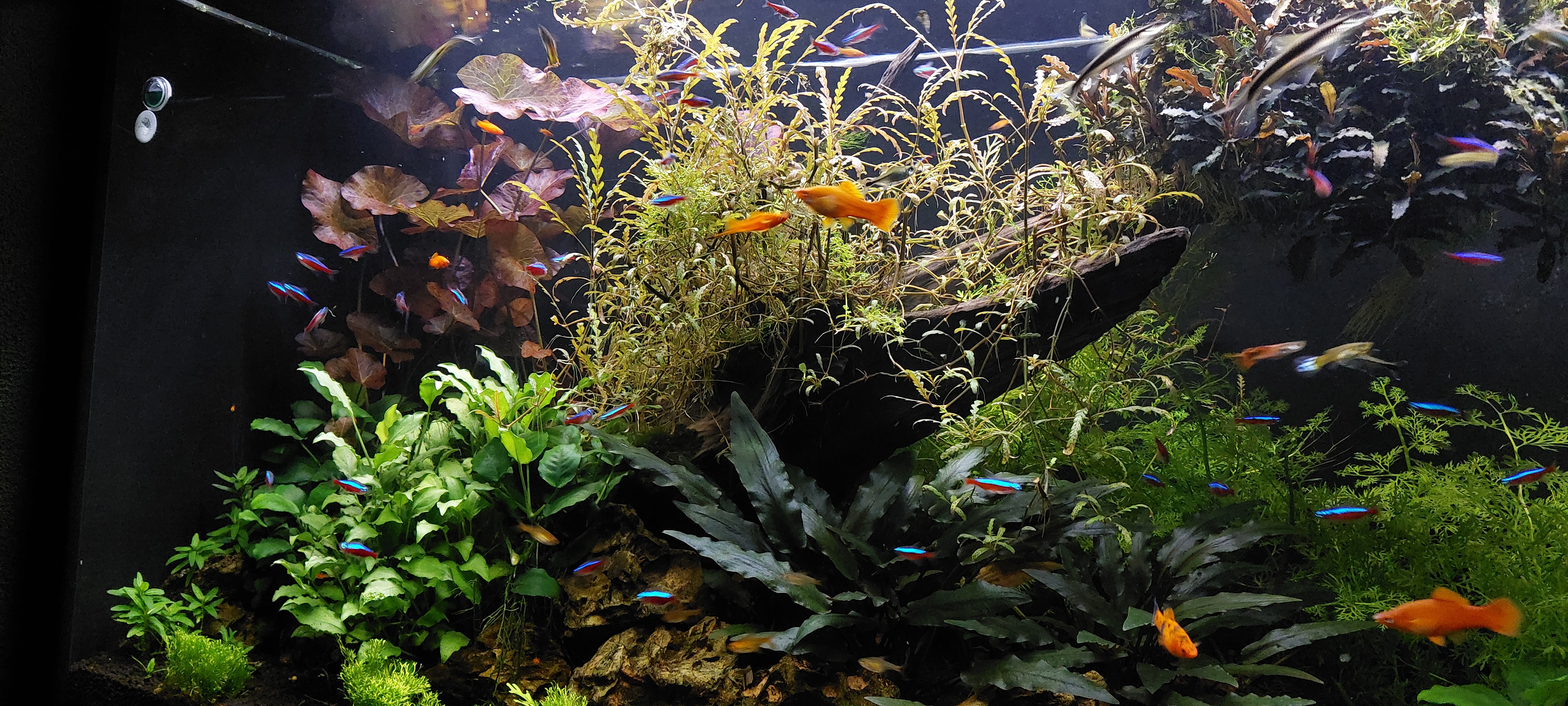 Fantastische plaatjes, ik ben stikjaloers.Late reactie, maar even weinig met de bak bezig geweest update komt zo! Visbezetti is vrij divers. Maar voornamelijk guppies, zwaarddragers, kardinalen, otocinclus, pantsermeervallen, gouramis, siamese algeneters, een vuurstaart en nog wat verschillende zalmen.Fantastische plaatjes, ik ben stikjaloers.