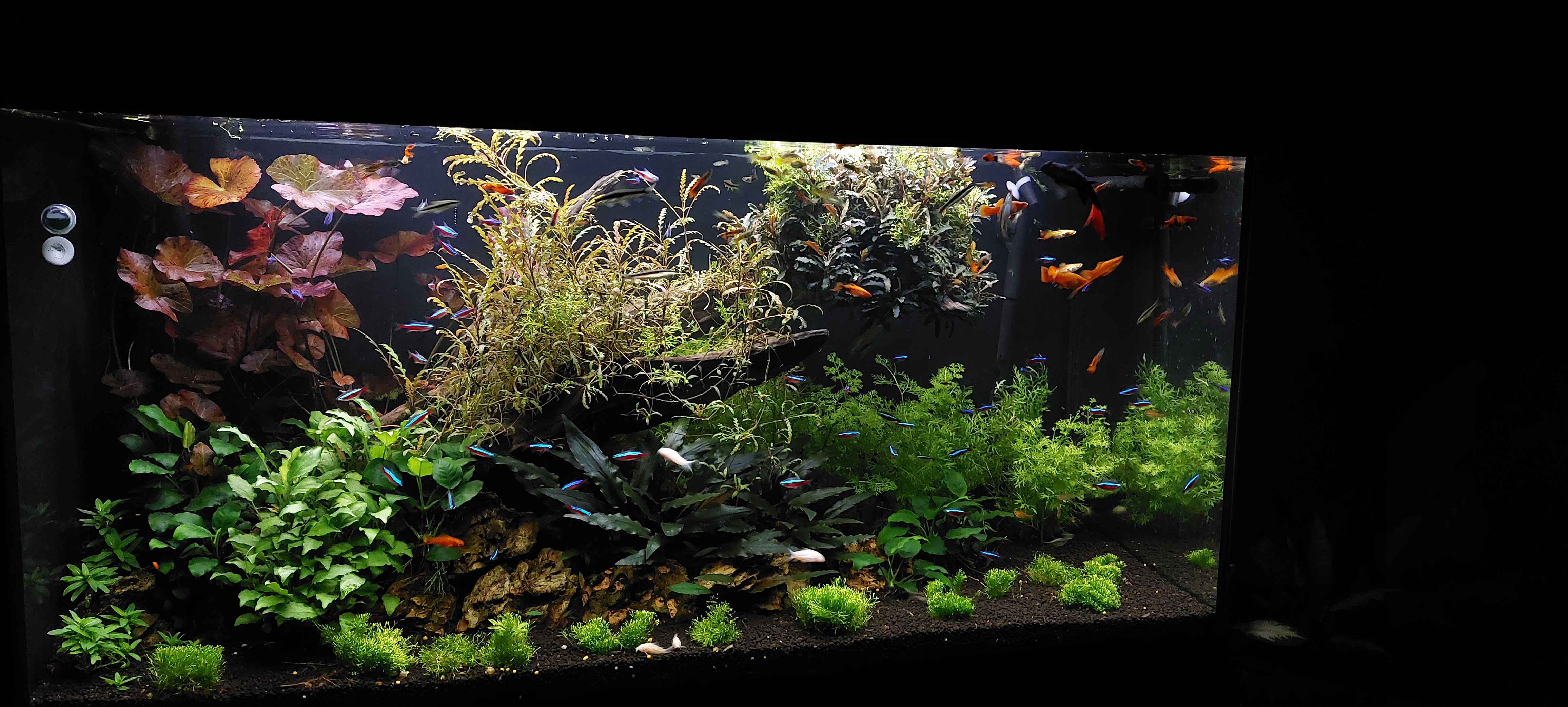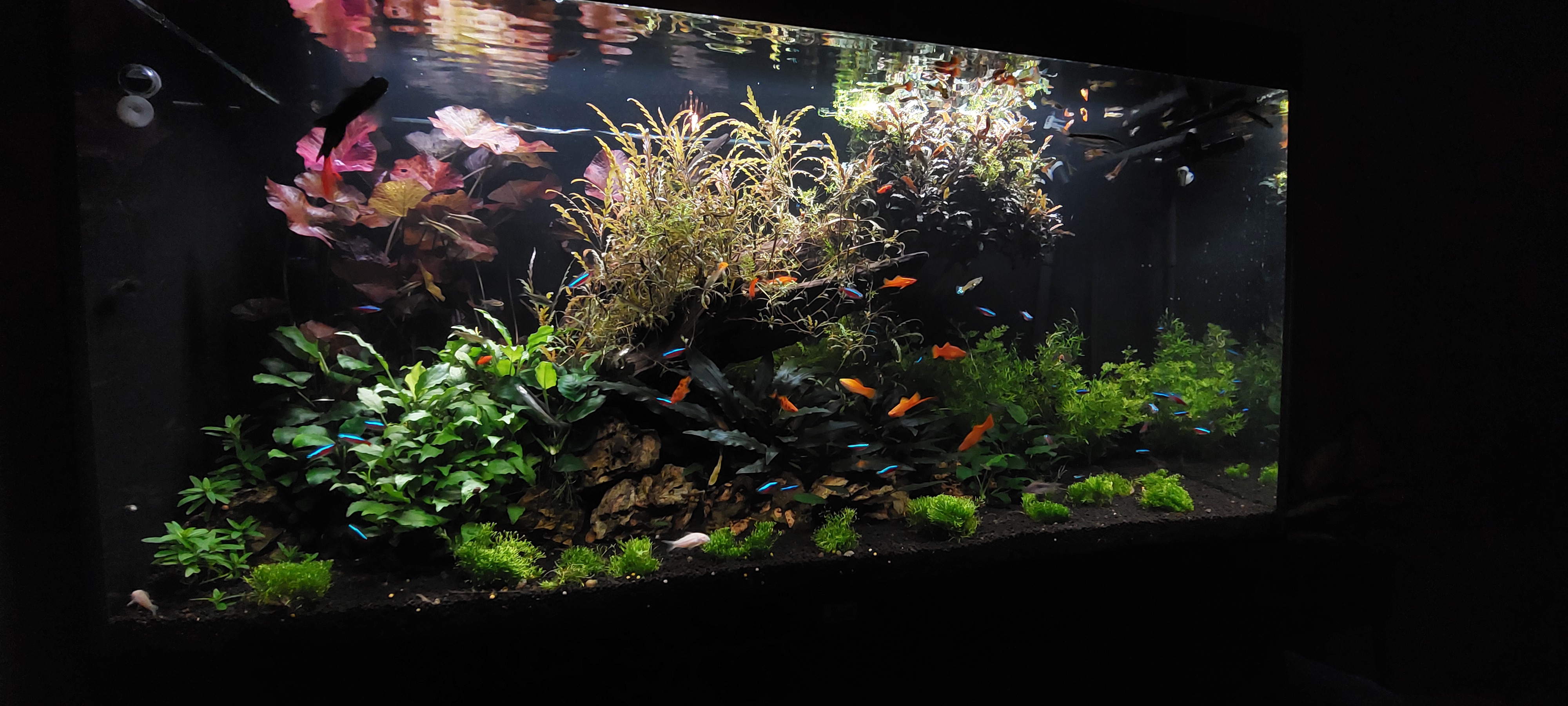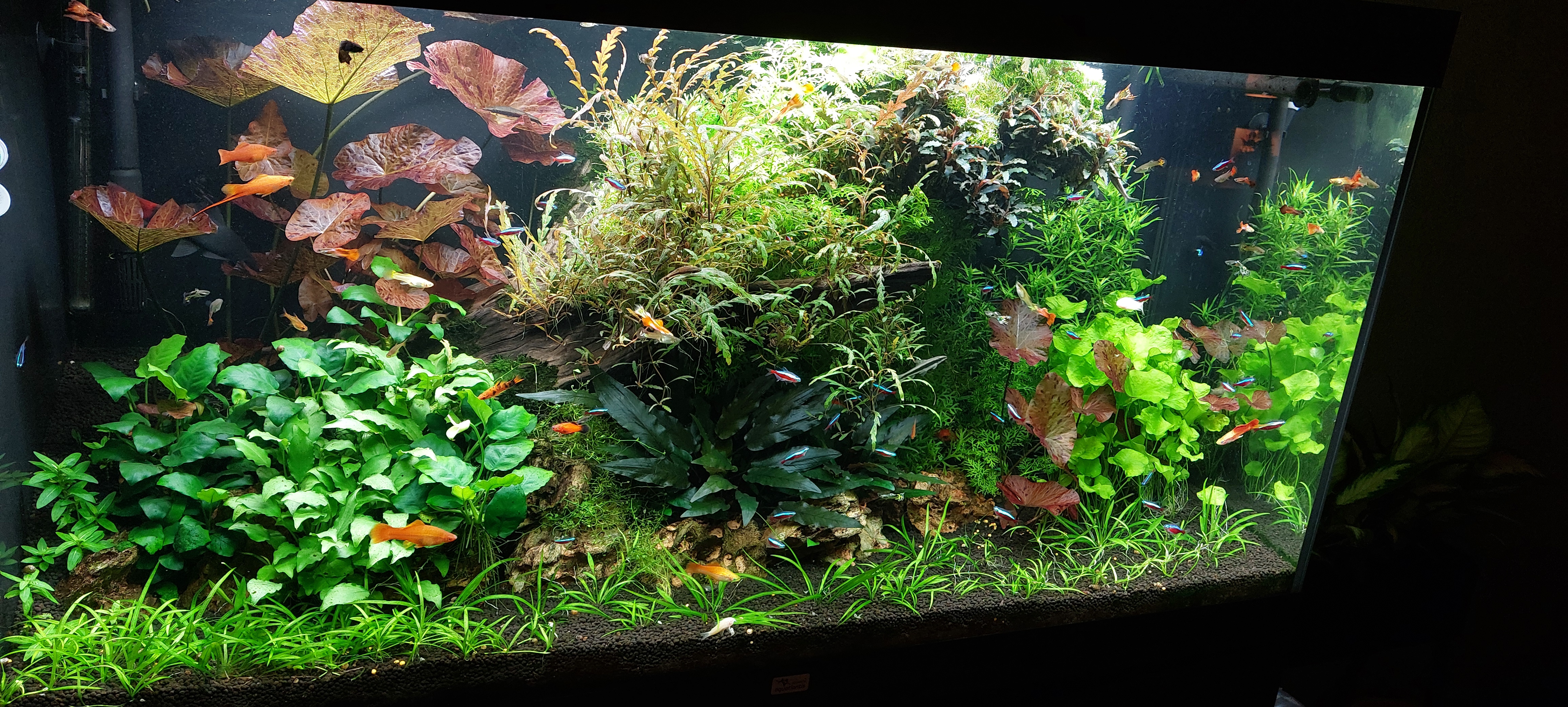 Fantastische plaatjes, ik ben stikjaloers.Late reactie, maar even weinig met de bak bezig geweest update komt zo! Visbezetti is vrij divers. Maar voornamelijk guppies, zwaarddragers, kardinalen, otocinclus, pantsermeervallen, gouramis, siamese algeneters, een vuurstaart en nog wat verschillende zalmen.Fantastische plaatjes, ik ben stikjaloers.