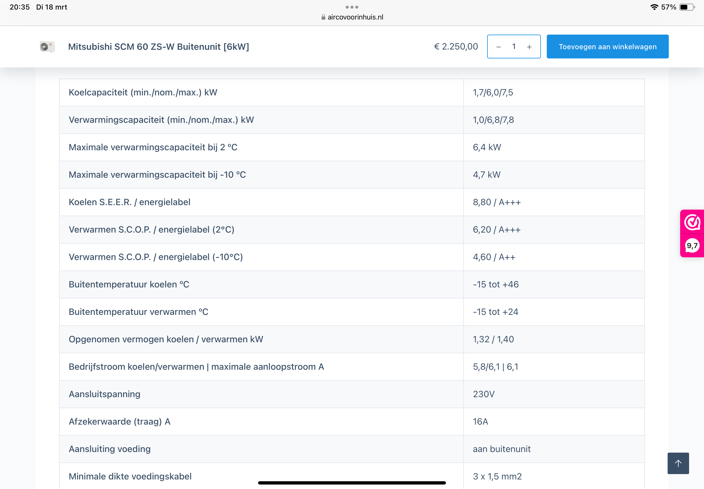 De meeste modellen die nu gewoon te koop zijn hebben een SCOP tussen de 4,5 en 5,5. De COP wordt echt een stuk lager wanneer het kouder wordt.