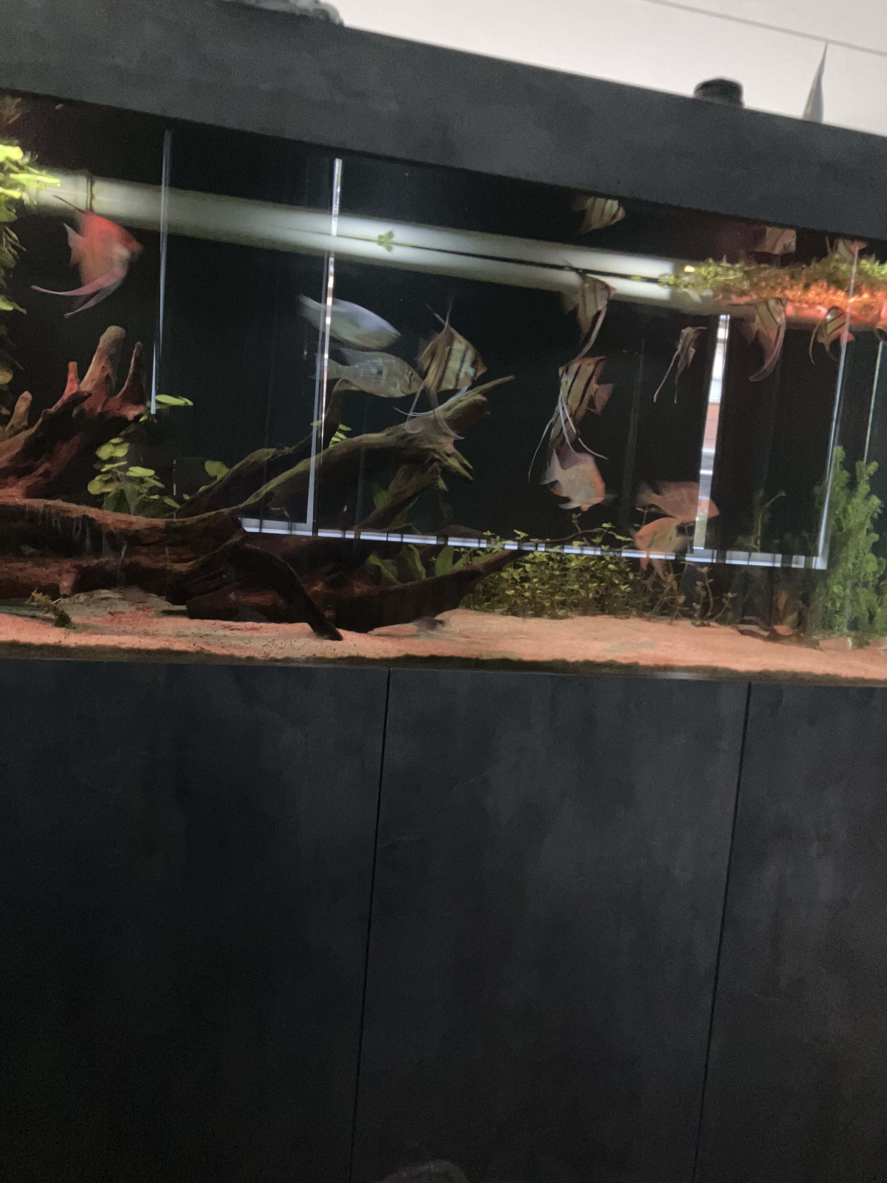 Ik zie veel vuil op de bodem terwijl ik dat niet zie hier bij de manen en ook bruine aanslag volgens mij. Bruinalg zie je vaak bij veel belasting dus k vraag me af is de bacteriecultuur wel op orde of is de belasting te hoog?