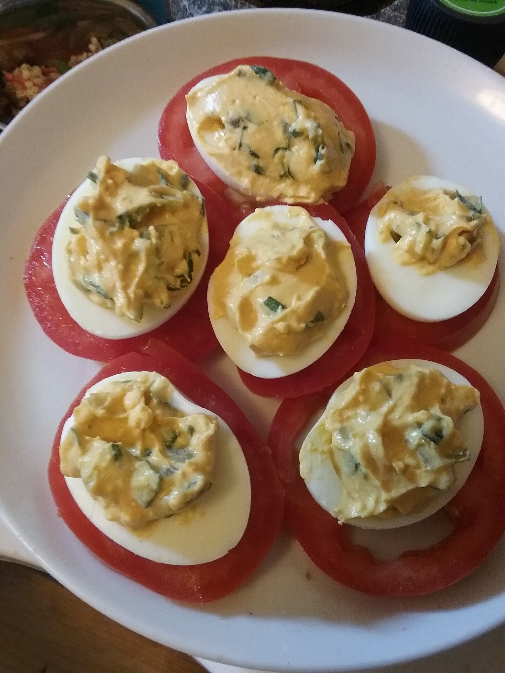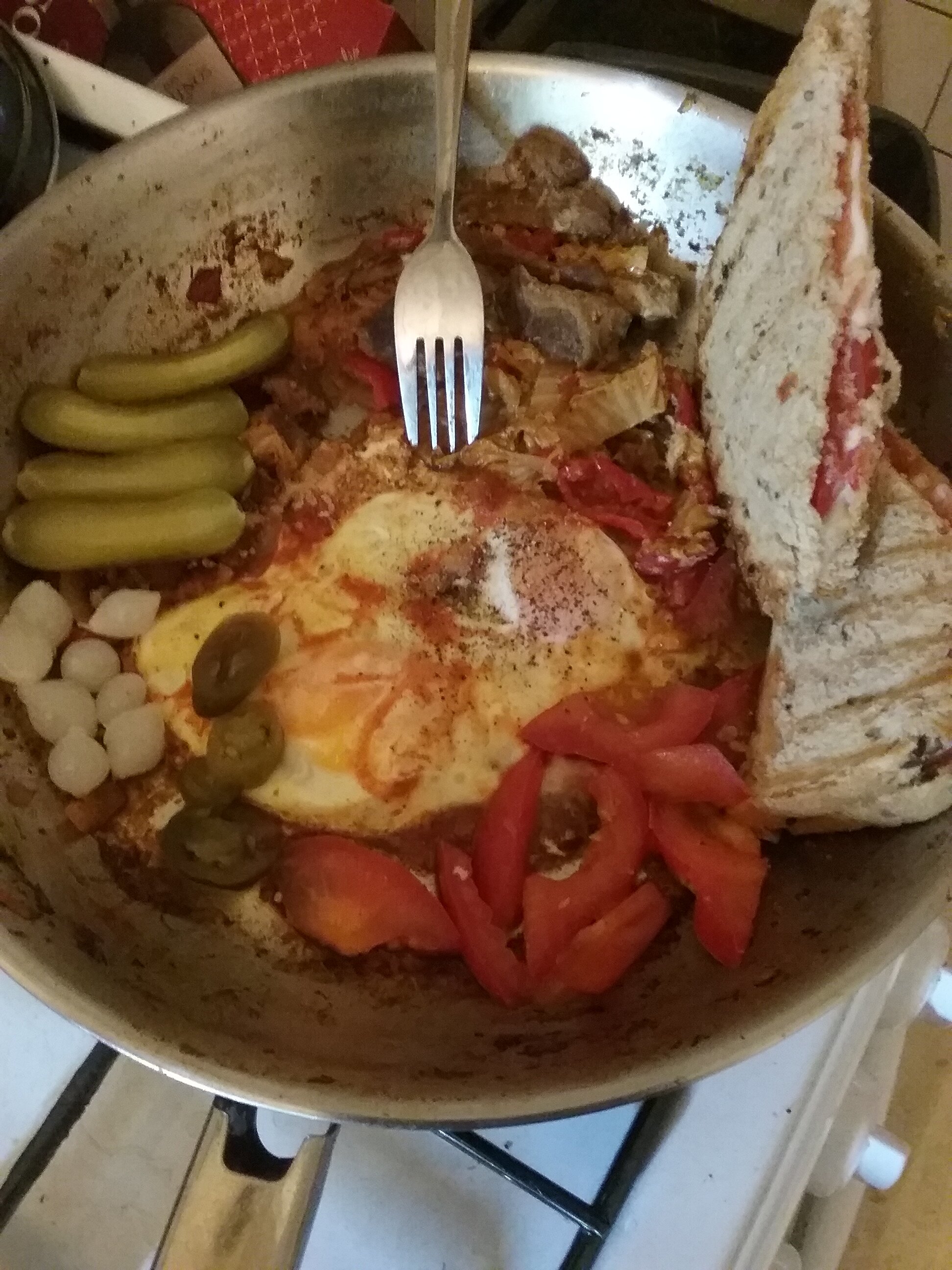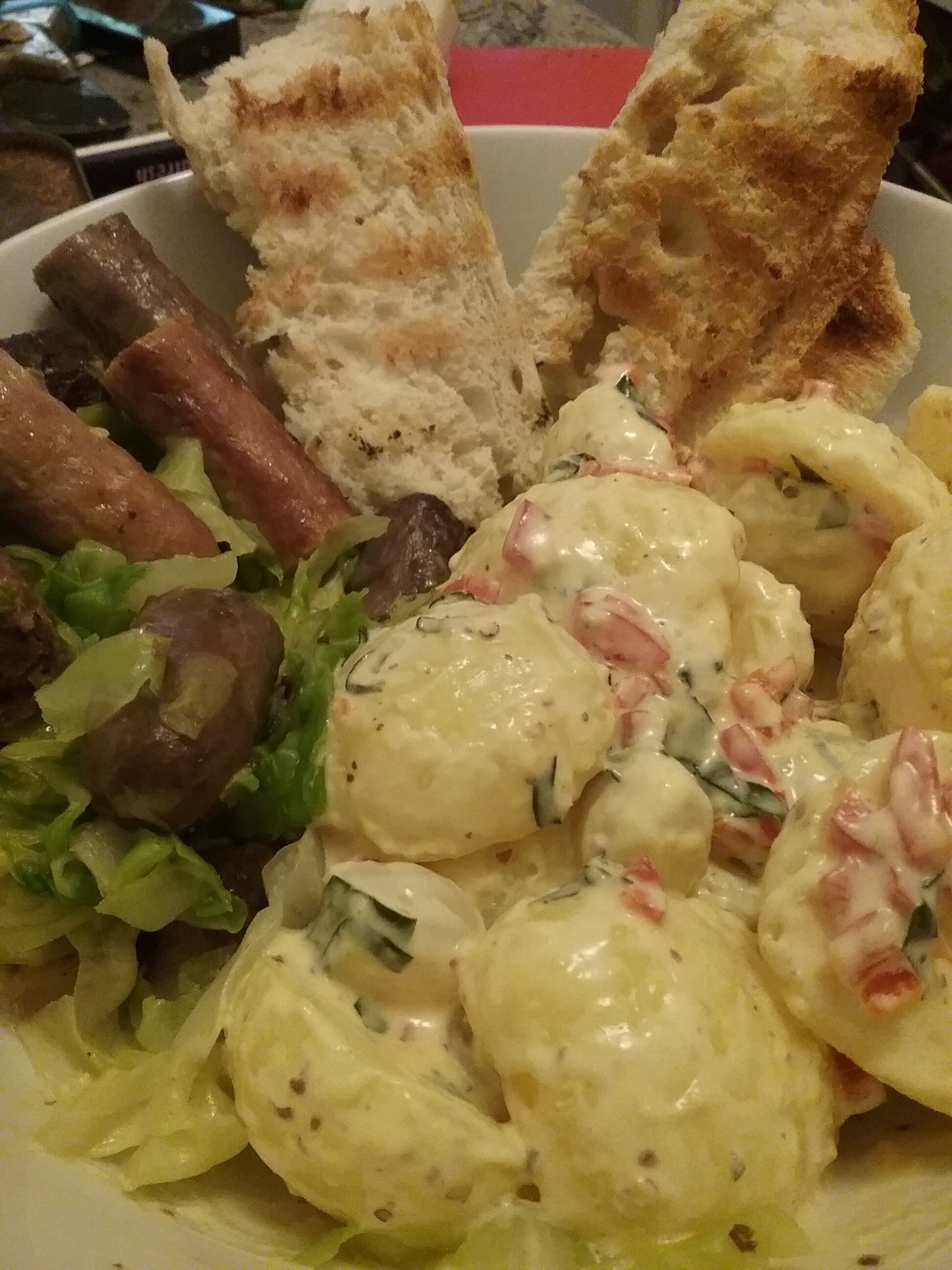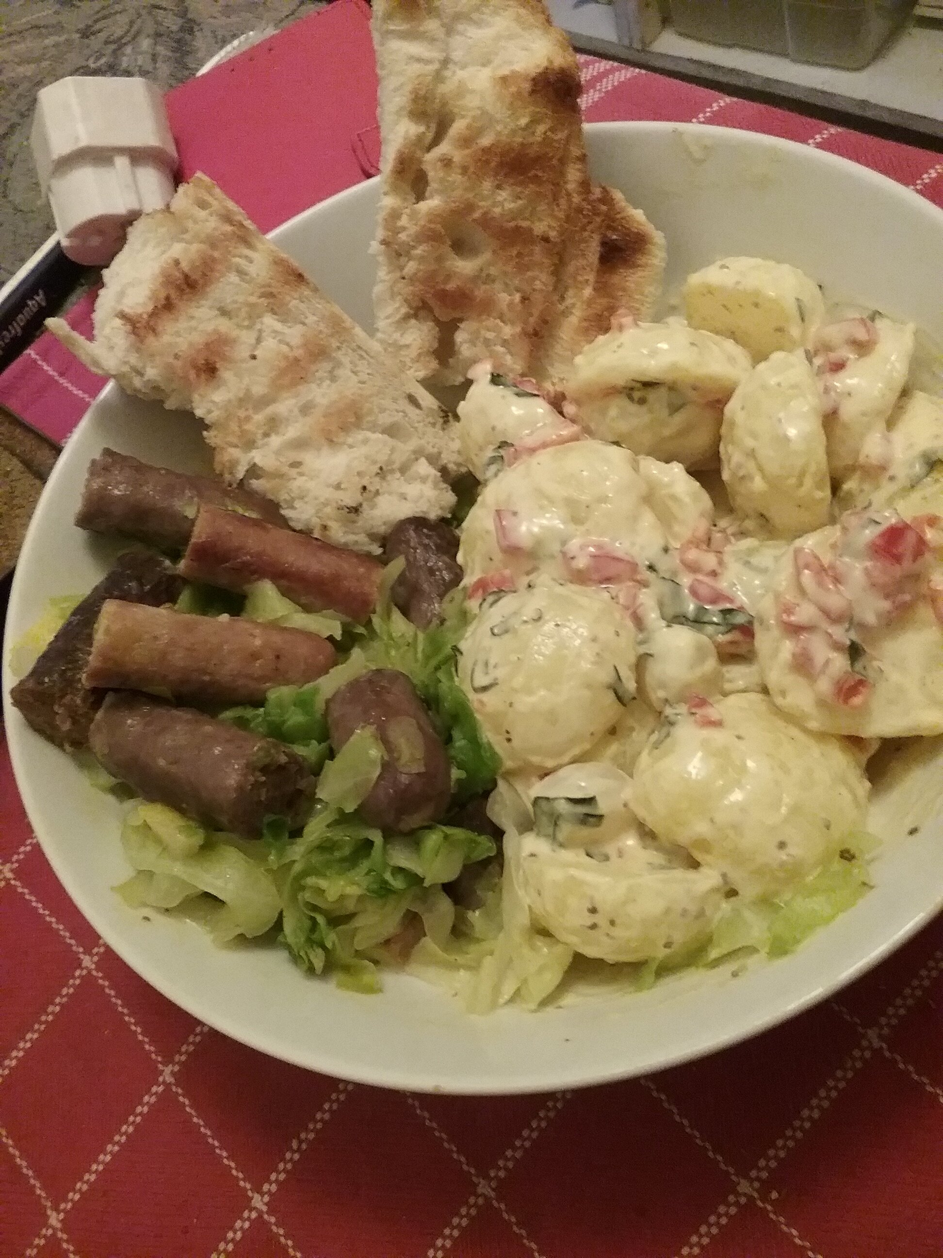 Hier aardappelschijfjes met nog nader te bepalen groenten en (speciaal voor John) lekkere vegameuk![]()