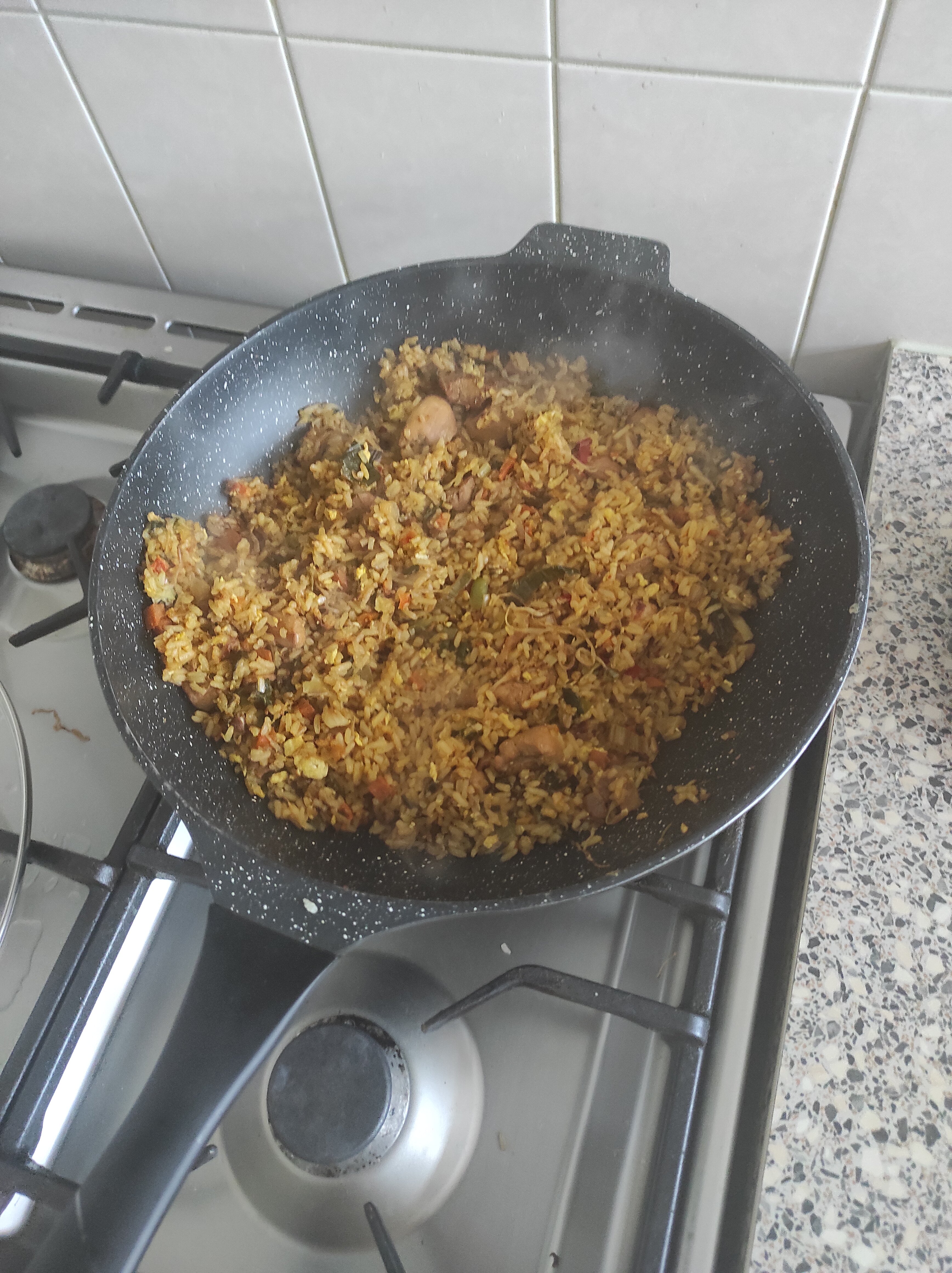 Gelukkig geen meuk dit keer JW😉HIer wordt het improvisatieroerbak met gerookte kip![]()