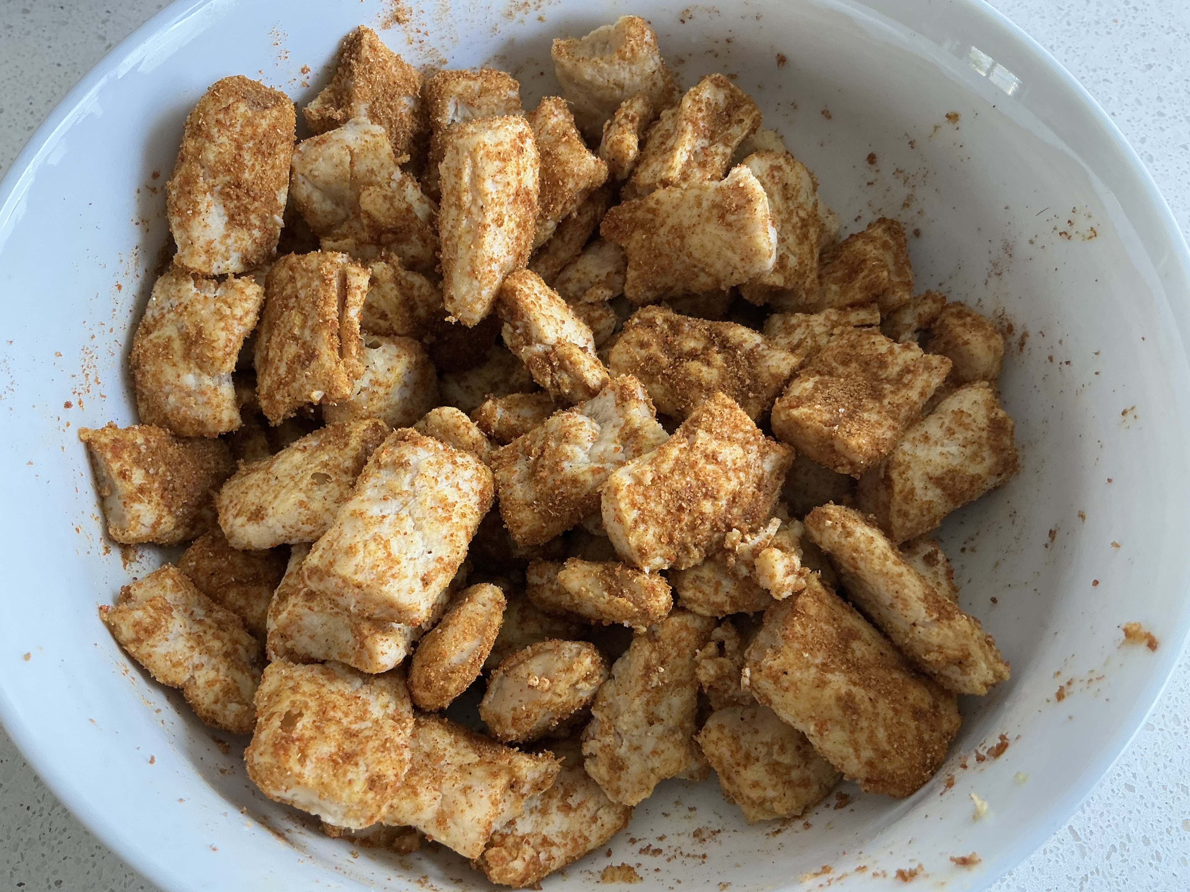 De peasmaker stukjes zijn geweekt en gekruid.