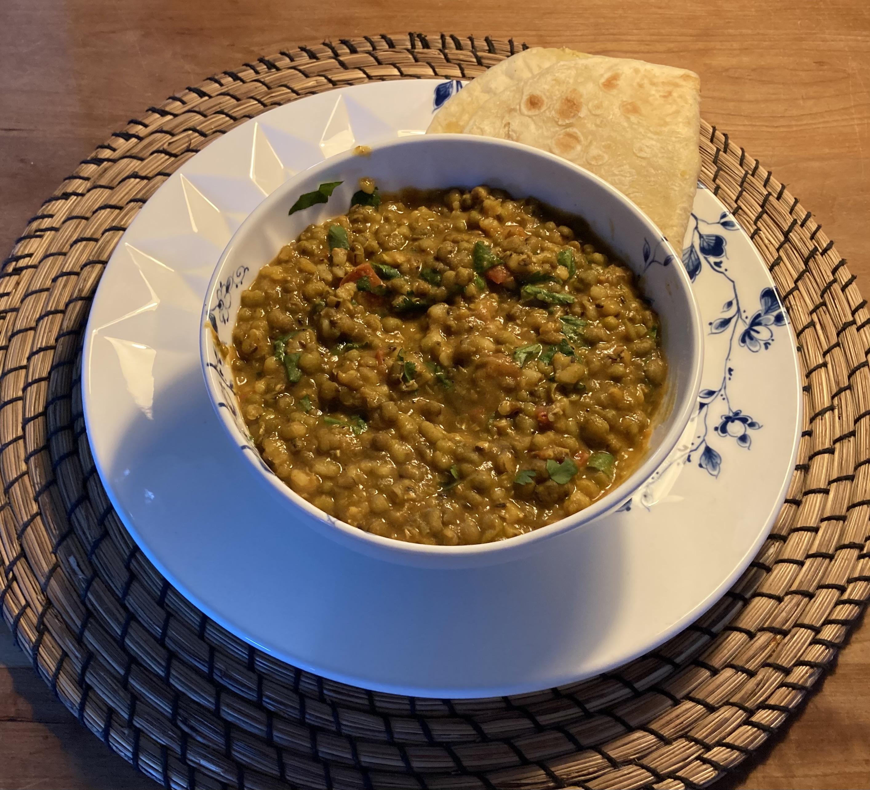 Vanavond mung bonen dal met roti.