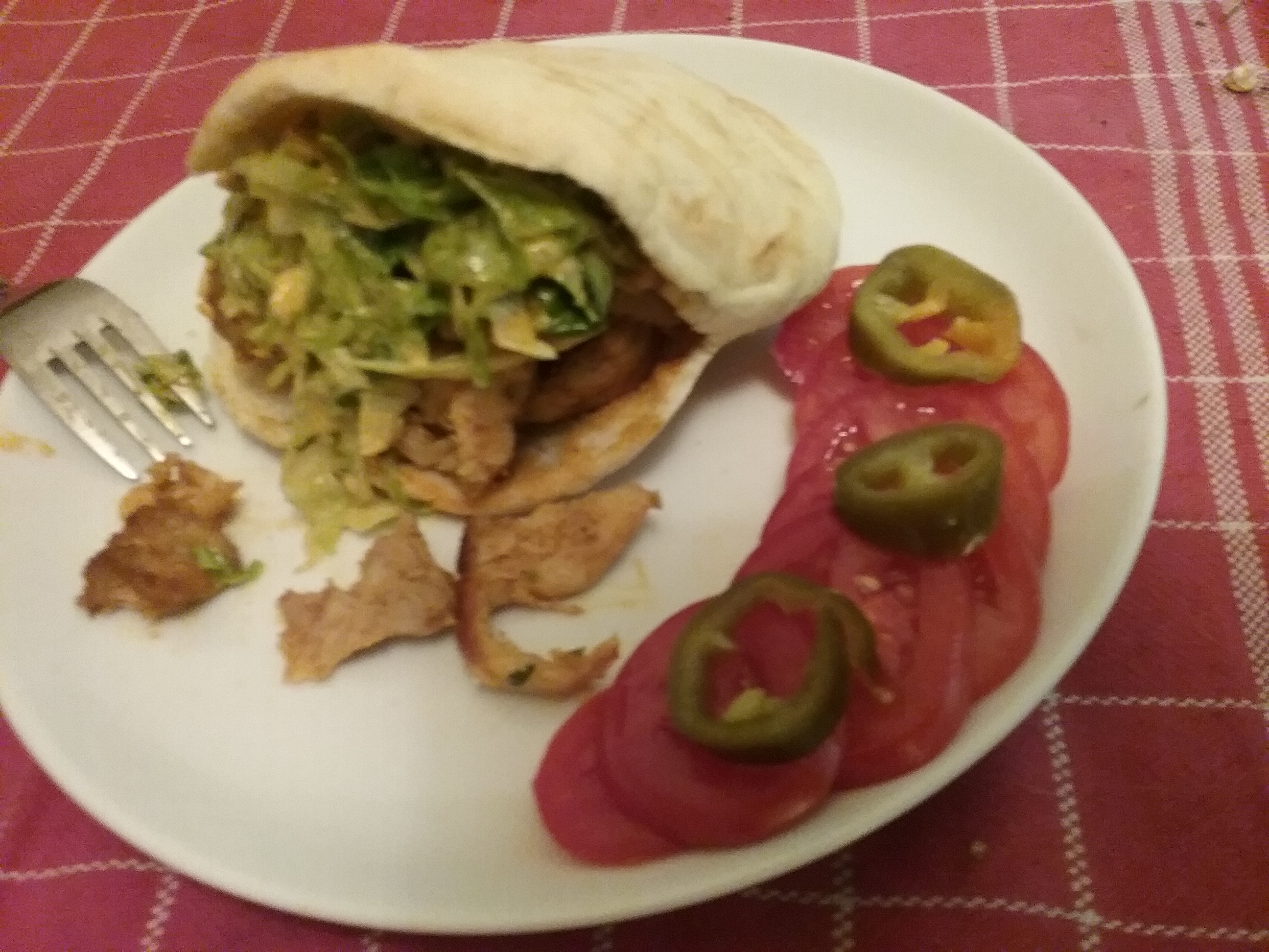 Zowel gister als vandaag kip shoarma met brood en heel veel saus.