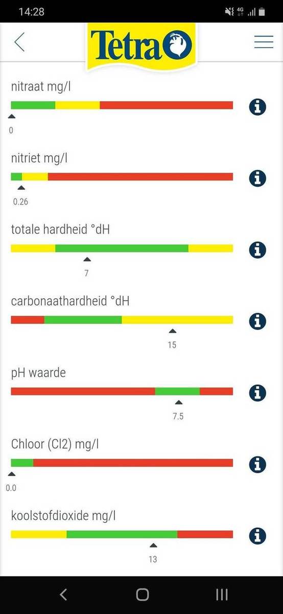 Voor het nitraat gehalte heb ik gisteren een test gedaan en alles is oké zoals in bestand