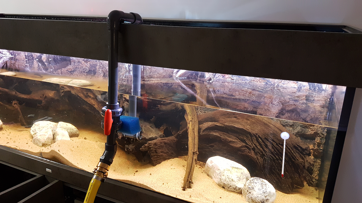 Je kent het, net de tuinslang in het water, kraan open en the slang valt uit het aqurium....arghh