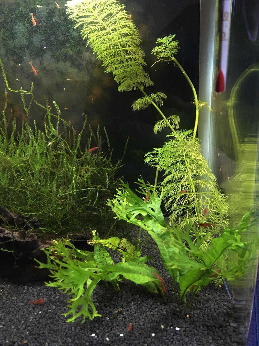 De garnalen die omvallen zijn de oranje (neo caridina's) die op dezelfde ph zaten als hier. Vond er vanochtend helaas weer 1 en net een volwassen met eivlek zo goed als dood. Die had wel zijn zwemvliezen naar beneden staan alsof hij wilt vervellen maar het niet lukt ofzo. de GH is erg laag dus misschien een mineralen probleem?? 🧐