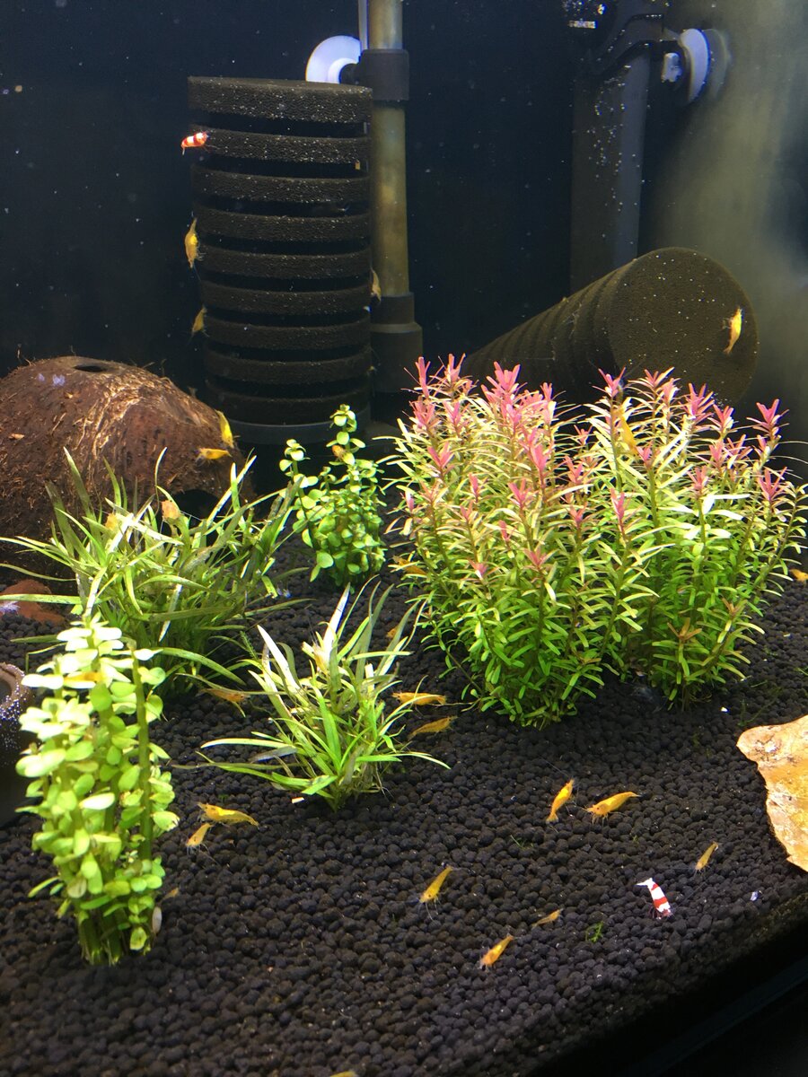 In de 55L dennerle zit een voedingsbodem voor en tot voor kort 30 garnalen. De planten groeien echter helemaal niet (hooguit 0,5cm in de laatste maand). Twee weken terug zijn er 170 garnalen bijgekomen en nu beginnen ze langzaam te groeien. Heb echter wel om de dag een dode garnaal door zuurstofgebrek in de nacht (door slechte groei denk ik dan).