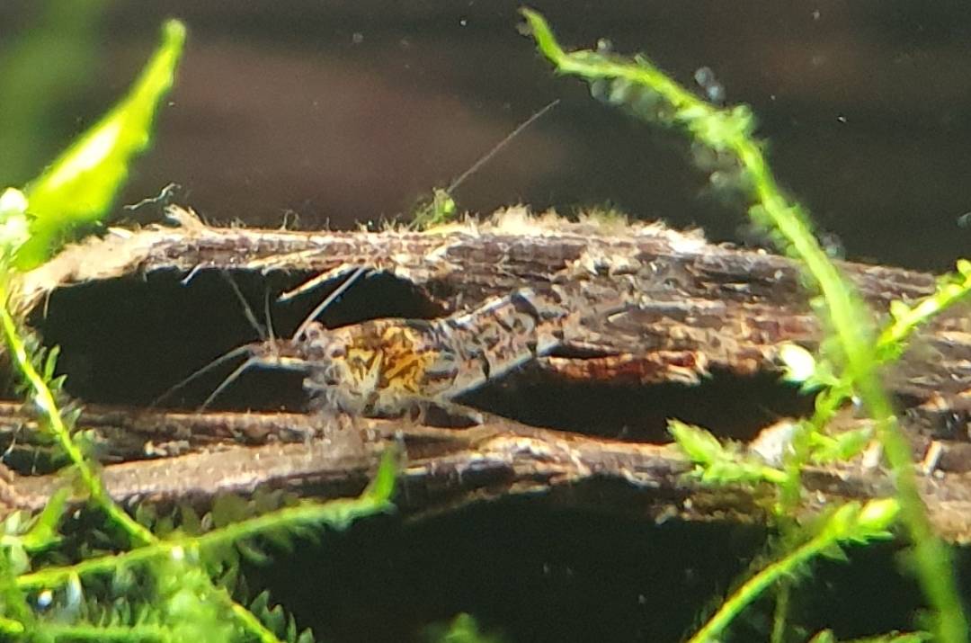 Vanaf het begin heb ik 1 rare garnaal. Eentje met tijgerstrepen (zie foto).