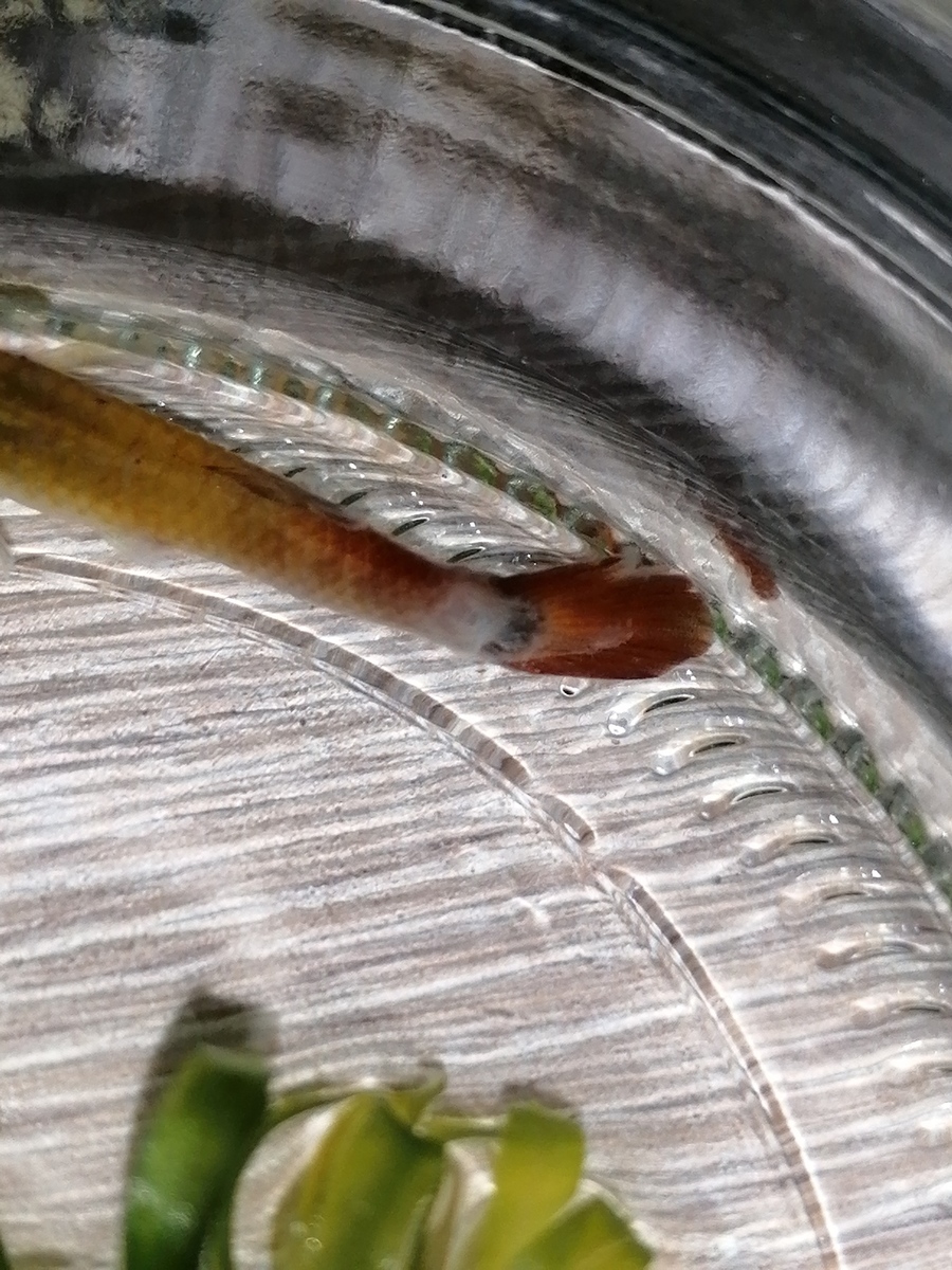 Ze waren allemaal perfect gezond, maar opeen begon eentje te drijven met zijn hoofd omhoog, ik dacht dat hij lucht in zijn zwemblaas had. Dus ik heb hem apart gezet in een bakje met weinig water zodat hij zo goed als op de bodem ligt. Maar nu zie ik dat hij zijn staart helemaal niet meer beweegt. Hij zwemt ook enkel achterwaarts. Kan iemand mij helpen? Hoe komt dit? Kan ik mijn visje nog helpen?